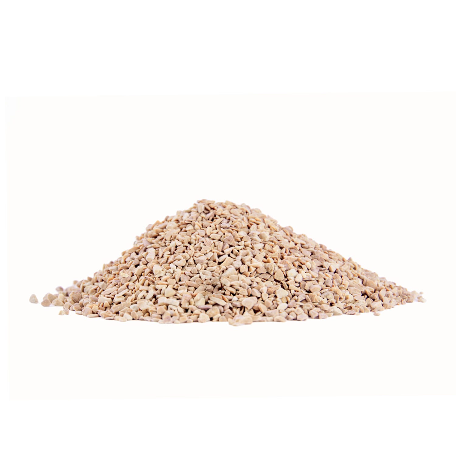 Haufen aus weißem Steinmix 4-7 mm auf weißem Hintergrund Haufen aus weißem Steinmix 4-7 mm auf weißem Hintergrund